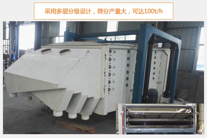 1、篩分量大,多層分級設計,一機分兩組,一臺抵多臺使用,產量翻倍;